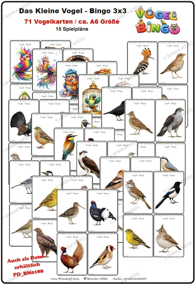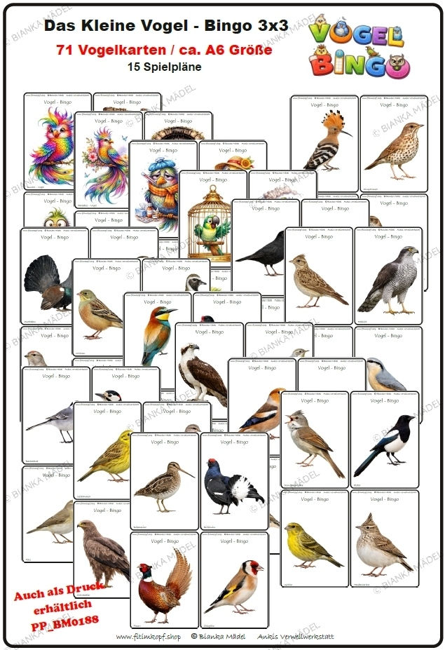 Vogel Bingo "Das Kleine" 3x3 - mit "Großen Bilderkarten"